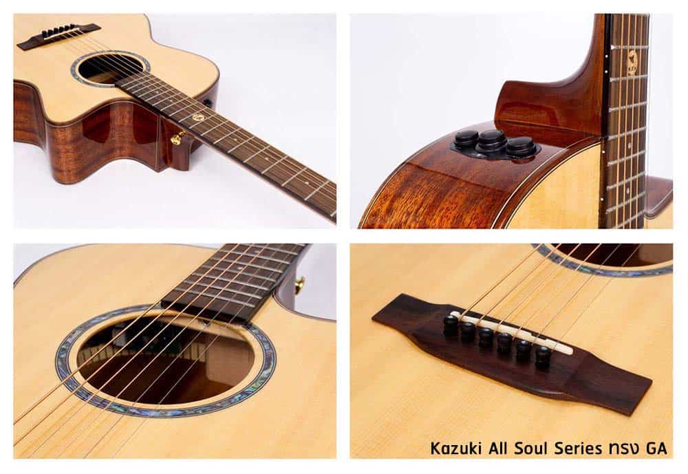 โดยรวมแล้วสเปคหลักของกีต้าร์โปร่ง Kazuki All Soul Series นั้นเหมือนกันทั้งหมด ไม่ว่าจะเป็นระบบ Trans Acoustic หรือ สเปคไม้ต่างๆ จะมีในเรื่องของรูปทรงกีต้าร์ที่เป็นตัวแบ่งให้ผู้ซื้อได้เลือกกีต้าร์โปร่งให้ตรงตามลักษณะการใช้งาน หรือรูปทรงที่ชอบ โดยทรงที่มี Cutaway หรือคอเว้า จะมีแค่ในทรง GA เท่านั้น